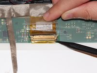 To open the clamp for the ribbon cable, use a spudger to pry up the metal bar securing it to the screen.