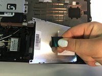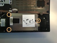 Remove the two black 2 mm Phillips screws holding the hard drive in place on the left side, and remove the larger Phillips head screw on the right side of the hard drive.