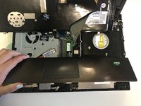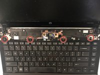 Remove the three black 3 mm Phillips head screws from the under the keyboard that are directly above the mouse pad.
