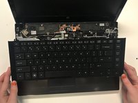 Carefully remove the keyboard by sliding it up towards the screen of the computer in order to release the keyboard ribbon cable.