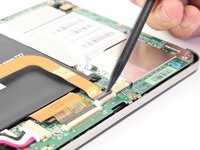 Using the flat end of the spudger, lift up the black panel covering the charging port connector.
