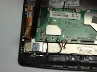 Locate the wires connecting the bottom speaker to the motherboard. The wires will be running alongside the battery