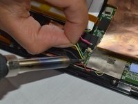 Disconnect the battery cables from the system board by desoldering them. See iFixit guide on how to solder.