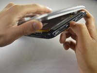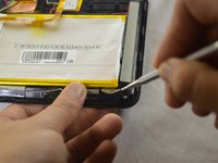 Insert a nylon spudger between the battery and the display panel assembly. Carefully pry the battery up and remove it from its place.