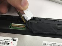 Remove the connecting cable of the screen and battery. Use a spudger to reveal the adhesive strip and carefully peel it off.