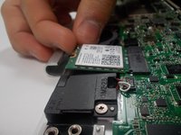 • Once the screw is removed, hold the WiFi card by it's sides and raise it up whiling sliding it out from the slot.
