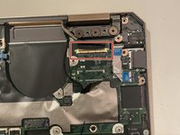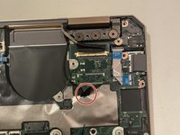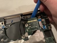 Using a small pry tool lift up on the larger portion of the motherboard to remove it from the body of the laptop.