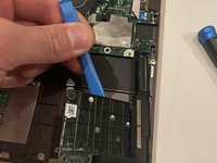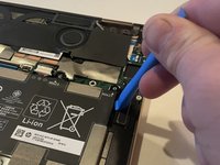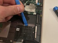 Use a small pry tool to lift up and disconnect the speaker cable from the motherboard.
