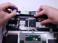 Using a Phillips #000 screwdriver, unscrew the one 2mm screw located to the left of the hard drive.