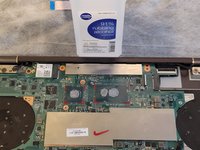 Clean the old thermal paste off of the heat sink, cpu, and gpu using isopropyl alcohol and a paper towel. The higher the percentage of the alcohol, the better. I used 91%.