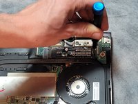 Remove the motherboard. Pull up the right side first, then pull it out.