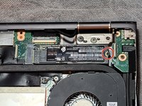 Remove the 3 mm Phillips #1 screw that secures the solid state drive to the board.