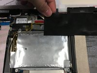 Locate the black strip of thermal resistant tape that is covering the upper right portion of the hard drive.
