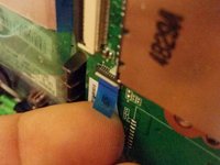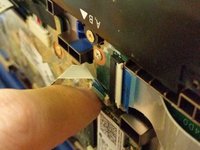 Disconnect the keyboard connector by using your fingernail to flip the black retaining clip back, and pulling the ribbon cable out