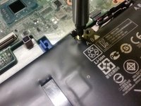 Disconnect the touchpad connector by using your fingernail to flip the black retaining clip back, and pulling the ribbon cable out