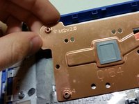 Disconnect the touchpad connector by using your fingernail to flip the black retaining clip back, and pulling the ribbon cable out