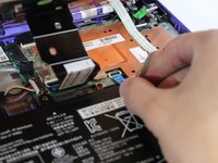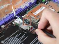 Use the black nylon spudger to flip the black tab up that holds the ribbon cable in place.