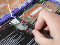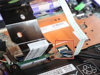 Use the black nylon spudger to flip the black tab up that holds the ribbon cable in place.