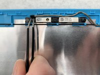 Take the tweezers and push up on the small connector to the left of the webcam.