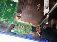 Using your iFixit Opener Tool, remove the wires connecting the speakers to the motherboard by lifting the indicated piece upward.'