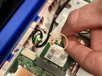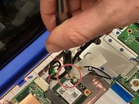 Attached to the Wi-Fi card is a black wire that must be removed. Using your hand, lift gently on the wire as close as you can to where it connects to the Wi-Fi card.