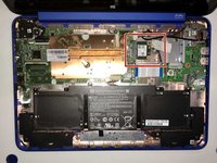 Inside the laptop you will notice the wireless card located in the upper middle. This will be what you are replacing.