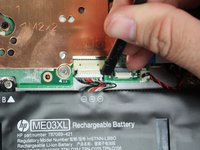 Use a pick to detach the Battery assembly cable.
