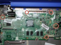 Remove five (5) Phillips P0 PM2.5x3.0 mm screws from System Board assembly.