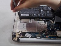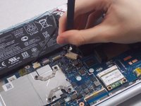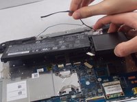 Using the iFixit tweezers, remove the cable connecting the battery to the motherboard.