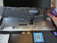 There are sixteen clips holding the keyboard in place. Gently pry up each clip using a plastic opening tool. Once all clips are loose, lift the keyboard from the computer.