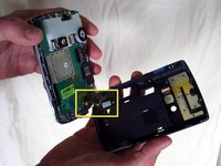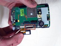 Holding the phone in the same orientation as the photo, gently pull off the backing of the keyboard and place it aside. Removing this backing grants you access to the keyboard.
