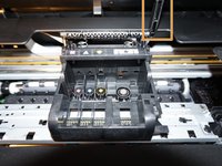 Remove the printhead as shown. IMPORTANT: Leave the scanner lid open, or put a note near the printer.
