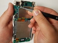 Using the tweezers, grab the top of the aux port and gently wiggle it.