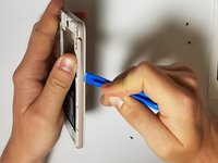 Start from the corners of the phone, and insert the plastic opening tool between the outer colored rim and the screen.