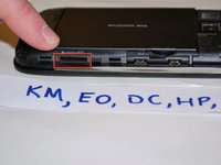 Place one of your fingers on the opposite corner of the headphone outlet/jack where there is a sliver of space. Be sure not to touch the front screen.