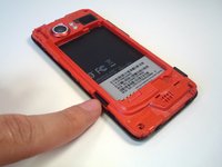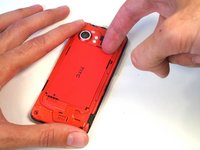 Gently pry the rear panel up and away from the phone. You may need to slide your thumb up the crack to separate the rear panel from the front case.