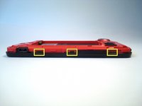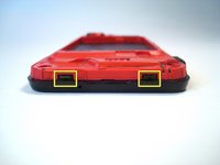 Rotate the phone 180 degrees and loosen the three clips on the side by the speaker. Note that the middle clip on this side is smaller than the others.