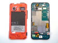 Starting on the bottom of the phone, gently push in on the (red) rear inner frame behind each black clip with a small flathead screwdriver.