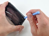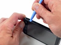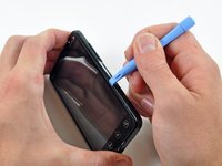 Gently insert an iPod opening tool between the glass front panel and its plastic surround near the upper top left corner of the Evo.