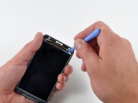 Gently insert an iPod opening tool between the glass front panel and its plastic surround near the upper top left corner of the Evo.