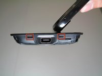 Insert the spudger into the seam along the edge of phone, and gently pry the back panel from the keyboard. Follow the seam along the perimeter of the phone.