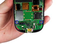 Remove the two screws located at the bottom left and right of the motherboard using a small Phillips screwdriver.