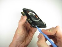 Using the plastic opening tool, pry the external speaker out of the back panel.