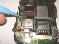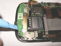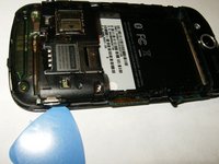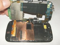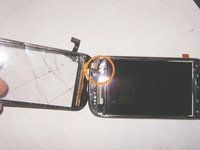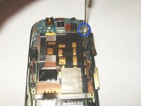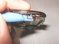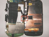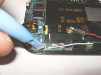 Remove the vibrate motor from its holder by simply pulling up on it. This will give access to the digitizer ribbon cable