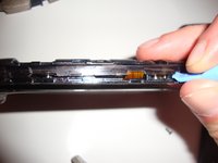 Using the plastic opening tools, pull up on the power button ribbon to gently detach it.