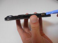 After making sure the button ribbons are away from the frame, insert the plastic opening tool into the frame and remove it.
