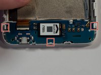 Remove the antenna connector from the bottom logic board by using tweezers. Grasp the bottom of the metal connector and pull away towards the top of the connector.