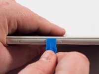 Place a plastic opening tool along the seam of the front plate and back plate. Run the opening tool along the seam while prying slightly in order to pop the plastic clips away from the front plate.