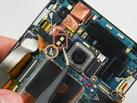 Remove the dual LED flash cover with a pair of tweezers. The cover is held on with a small amount of adhesive.