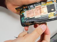 Use an iOpener or heat gun to loosen the adhesive at the bottom of the motherboard.